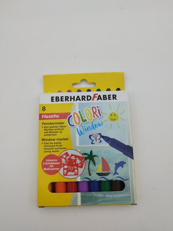 set vsebuje 8 kosov flomastrov za steklo + 3 šablone z različnimi motivi